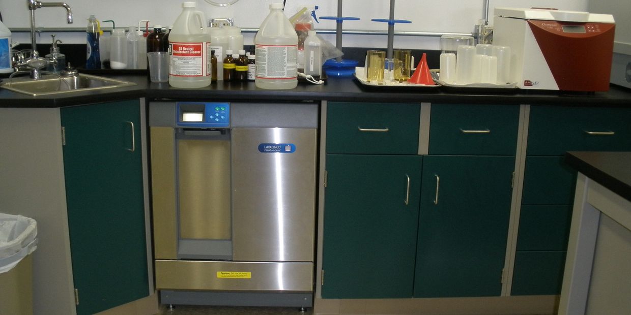 Bay 2 contains the wet test areas such as TDS, TSS, BOD Setup, Refrigeration, Ovens, Lab Grade Water Systems and Labware Washers are in this area, along with restroom facilities.